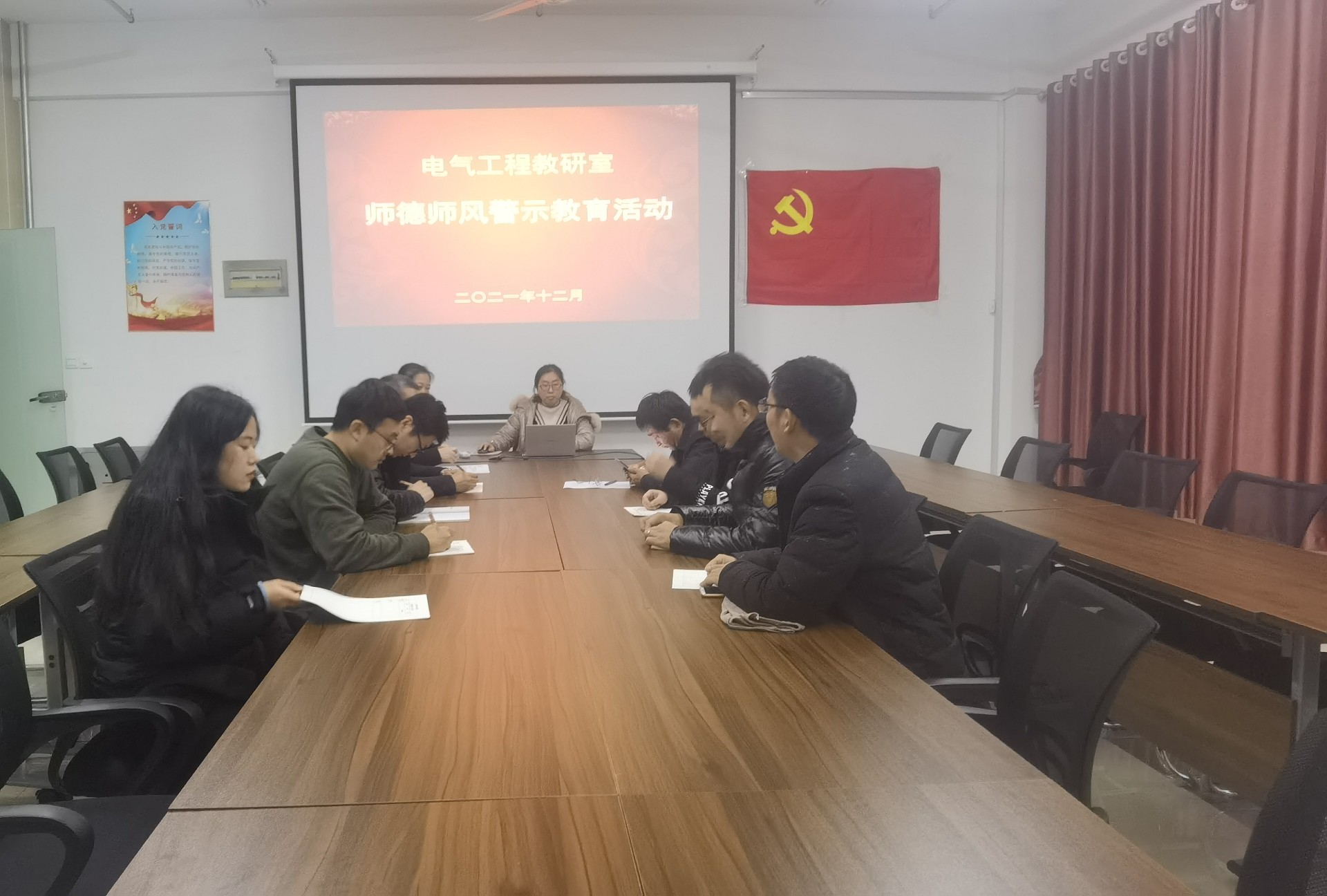 为进一步加强师德师风建设,发挥师德失范问题典型案例警示作用,引导教师将教书育人与自我修养结合起来,做到以德立身、以德立学、以德施教。yl6809永利官网集团全体教职工于12月7日下午在10号楼403室召开师德师风警示教育工作会议。会议由王平院长主持。