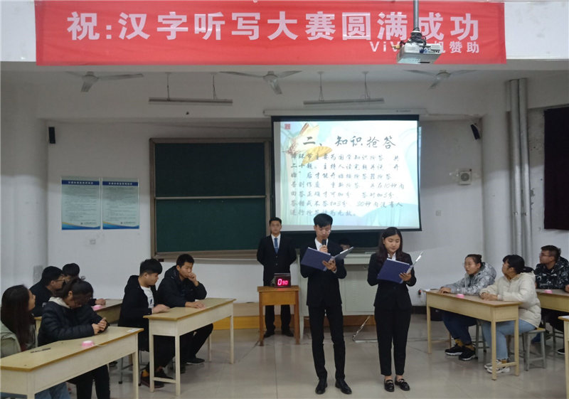 为推动我院学风建设,构建良好学习氛围,展现汉字经典之美,弘扬中华传统文化。yl6809永利官网集团自2018年11月11日起举办yl6809永利官网集团第四届汉字听写大赛,本次比赛以“展现汉字之美,弘扬传统文化”为主旨,经过初赛、复赛两个阶段的激烈角逐,于2018年11月27日在十号楼F301进行决赛,校团委高守朋老师、学管科长霍晨、各辅导员老师出席此次活动。