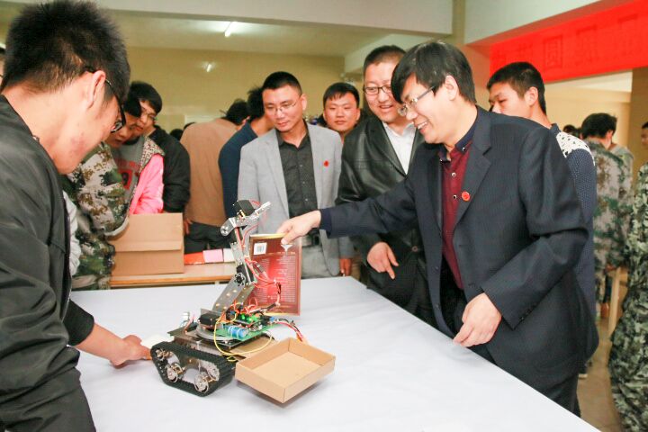 致辞结束后,各位领导、老师和同学们共同参观了展出的创新作品。本次活动经过同学们的精心制作,各位指导老师的层层筛选,共展出作品160余件。其中,132件作品为纯手工制作,涉及智能控制、电气电子、机电一体化等领域,代表了电气系的专业特色,也充分体现了学生们的创新精神和学以致用的能力。本次活动共评选出一等奖5名,二等奖10名,三等奖20名。