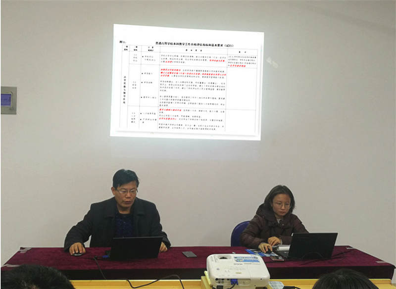 王平院长带领全体老师学习了教育部《关于开展普通高等学校本科教学工作合格评估的通知》及《普通高等学校本科教学工作合格评估指标体系》两个文件内容。王院长指出,我校的近期发展目标是创办合格的应用型本科学校,而教育部关于本科教学工作合格评估体系即为我们创办合格本科院校的标准,此标准也是我院教师进行合格本科教学的依据。王院长结合我校实际情况,详细的向全体教师讲解了指标体系内容。他要求每一位教师要熟悉和掌握本科教学工作合格评估指标,并以此来指导自己的教学工作,发现问题及时改进,以评促建、以评促改。