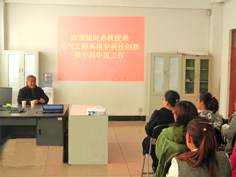 为进一步强化教职工创新意识,丰富我系内涵建设,2015年4月15日,电气工程系邀请胡向赤教授做了题为“科技创新、专利申报”的讲座,电气系系主任王平主持了此次讲座,电气系全体教师聆听了此次讲座。