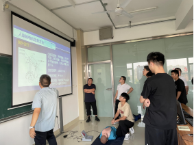 在安全用电知识普及活动中,张仁光老师普及了电工安全用电的基本常识,重点讲解了人身触电的急救方法。除了理论讲解,张老师和邢老师还准备了人体模型,现场示范了畅通气道、判断呼吸、口对口/口对鼻人工呼吸、判断心跳以及胸外按压等急救过程。随后,活动现场的同学也亲自实践了急救的各个步骤。