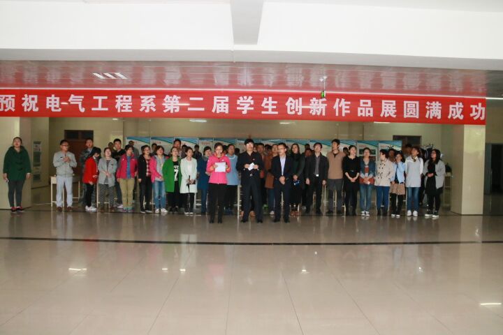 在国家大力倡导大众创业、万众创新的形势下,2016年4月19日下午,电气工程系第二届大学生科技创新作品展在10号楼一楼中大厅举行。教务处副处长李玉凤、基础部主任雷海峰、电气系主任王平、学生处处长助理葛斌及电气系全体师生参加了本次活动。