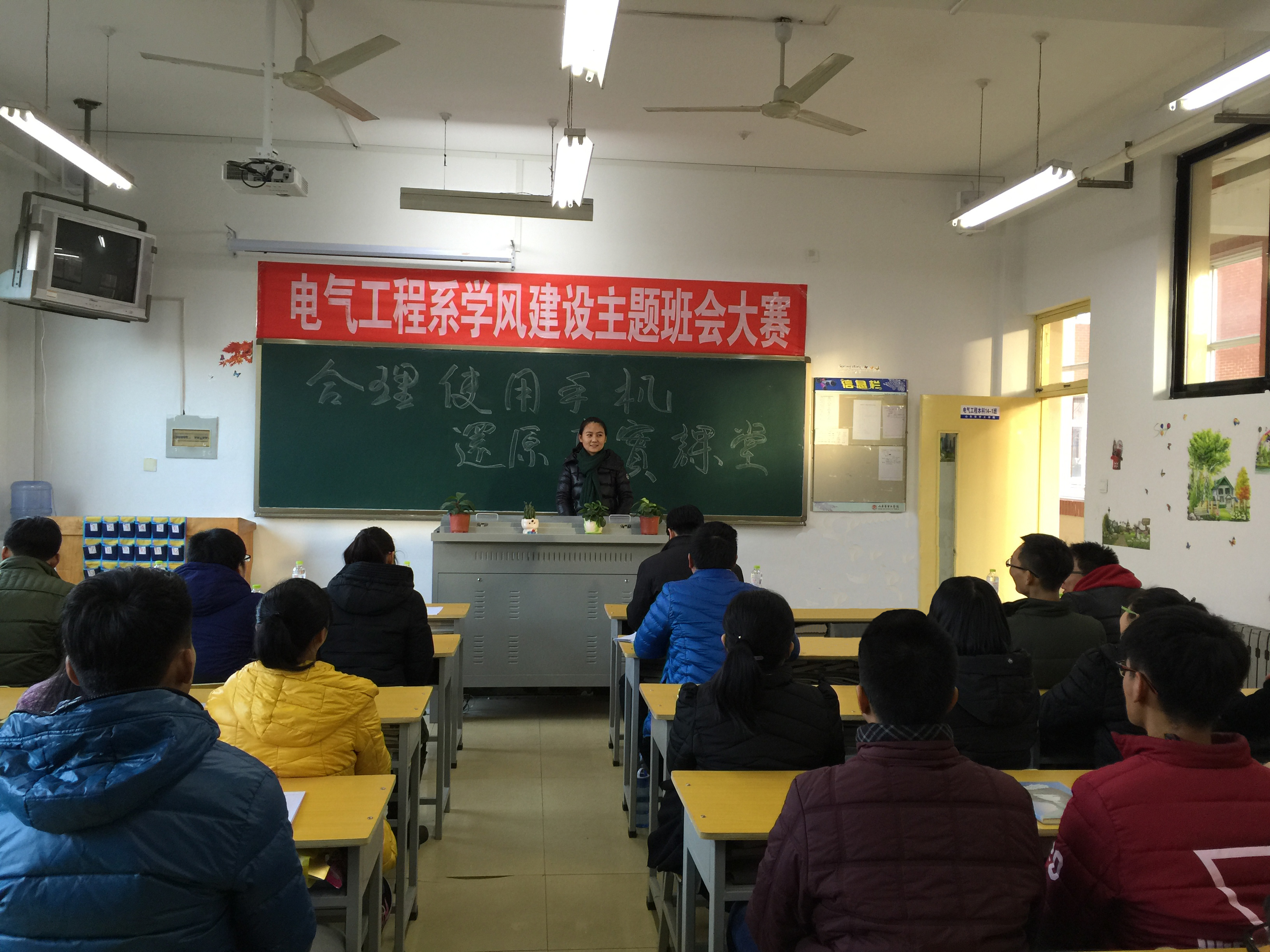 为了进一步贯彻落实学院《关于进一步加强教风学风建设的意见》,我系于12月2日下午,在9号楼105多媒体教室开展了“电气工程系学风建设主题班会大赛”活动,学院党委副书记、副院长高挺进,学生处处长侯建昌,电气工程系主任王平、主任助理王东盈莅临比赛现场,本次大赛由电气工程系学管副科长李俊主持,电气系所有辅导员参加了此次比赛。
