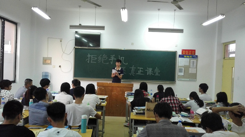 为加强学生建设,营造良好的学习环境,让学生远离手机,回归课堂,6月3日电气工程系在2014级电气工程及其自动化专业本科班推行“无手机课堂”活动。