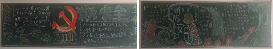 活动中,静态的黑板报成为学生互动学习阵地,同学们用画笔勾勒消防场景、用文字传递安全理念,让消防安全知识在班级阵地落地生根。同学们在交流中熟记消防安全知识,在绘画中强化消防安全意识,将“关注消防、重视安全”的理念切实融入了日常生活。