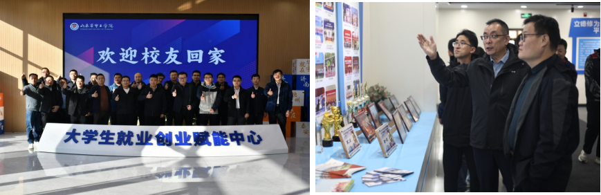 上午9时起,校友代表陆续返校,在工作人员引导下完成报到、录制祝福视频等环节,参观了大学生就业赋能中心、大学生心理健康教育中心、第二课堂教育体验中心等校园场所,重温求学时光,感受母校发展变化。参观结束后,校院领导与校友代表在行政楼二楼大厅合影留念,定格团圆时刻。
