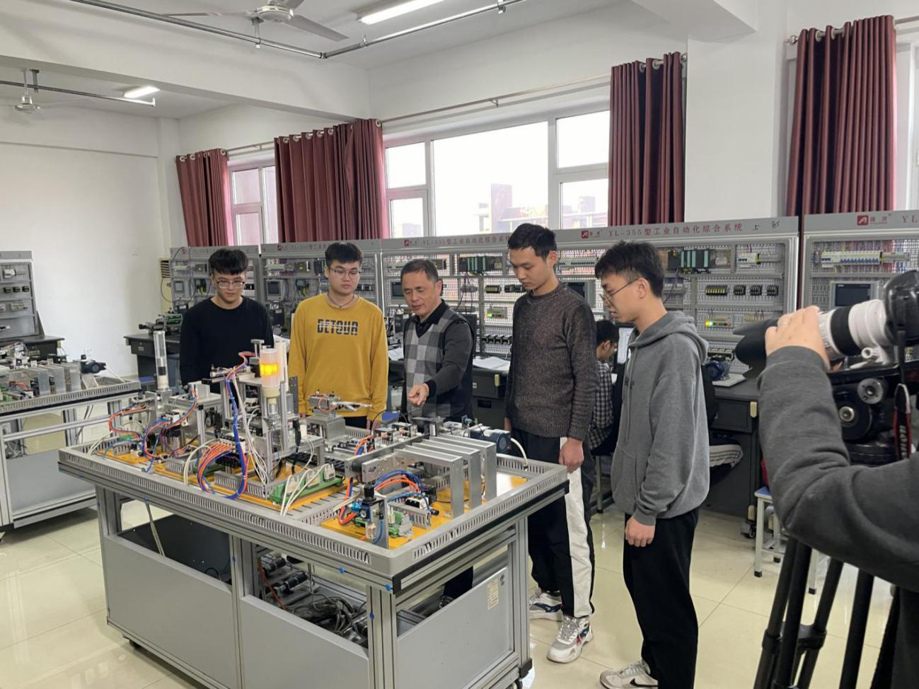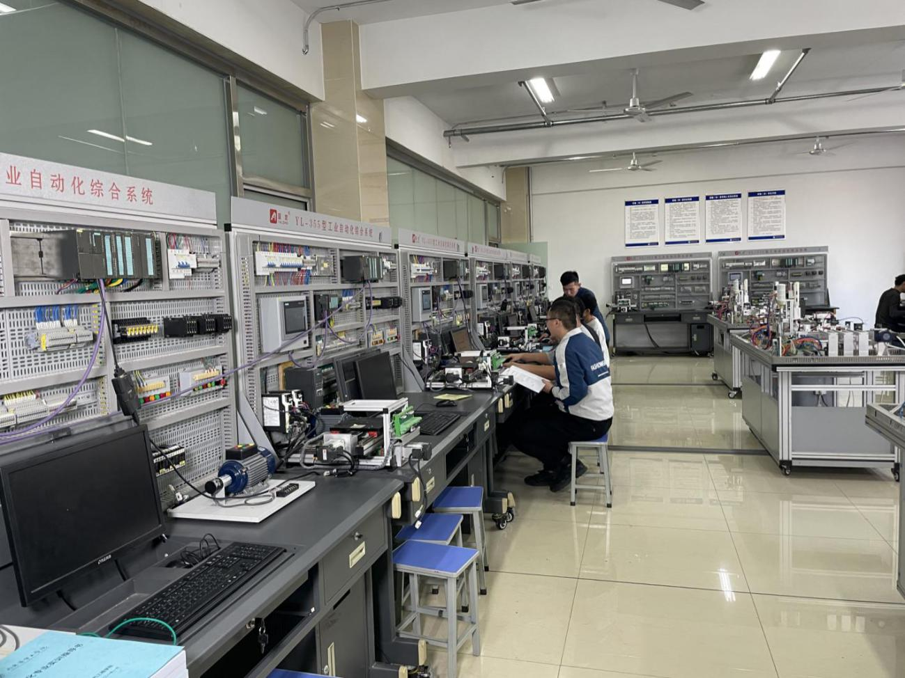 柔性制造系统实验室配备3组柔性自动生产系统,每个系统包括1条生产线和5个控制台。每条生产线包含供料、加工、装配、分拣、输送5个工作站。可进行变频器控制电动机、PLC控制电动机、伺服驱动器点动控制伺服电机、供料单元的运行调试、联机运行调试等实验实训项目。