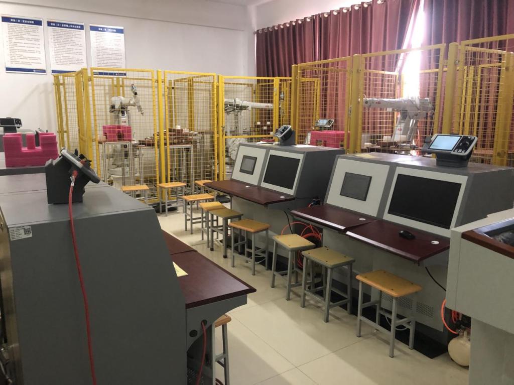 工业机器人在线编程实验室配备6套ABB工业六轴机器人开发平台,拥有六轴机械臂、IRC5控制器、控制台和示教器等模块,有效载荷5kg。可开展坐标系建立、运动指令编程、点位示教与运动编程、工件坐标系与运动编程操作等实验项目。