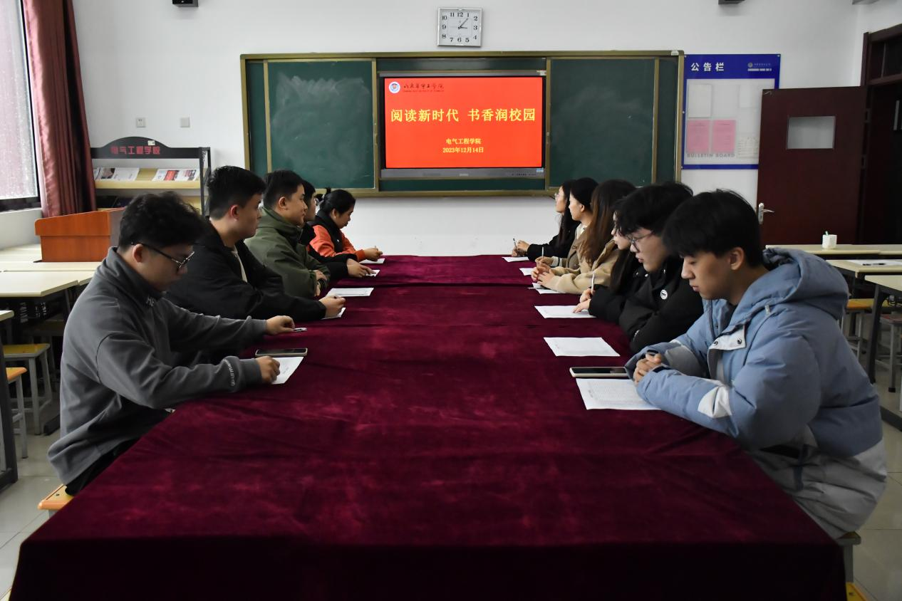 为了让同学们认识读书的重要性,帮助学生拓宽阅读视野、提升学术素养、丰富精神世界,电气学院于12月14日在10号楼 406举办阅读新时代、书香润校园读书分享会活动,各班级学生代表参加了本次活动。