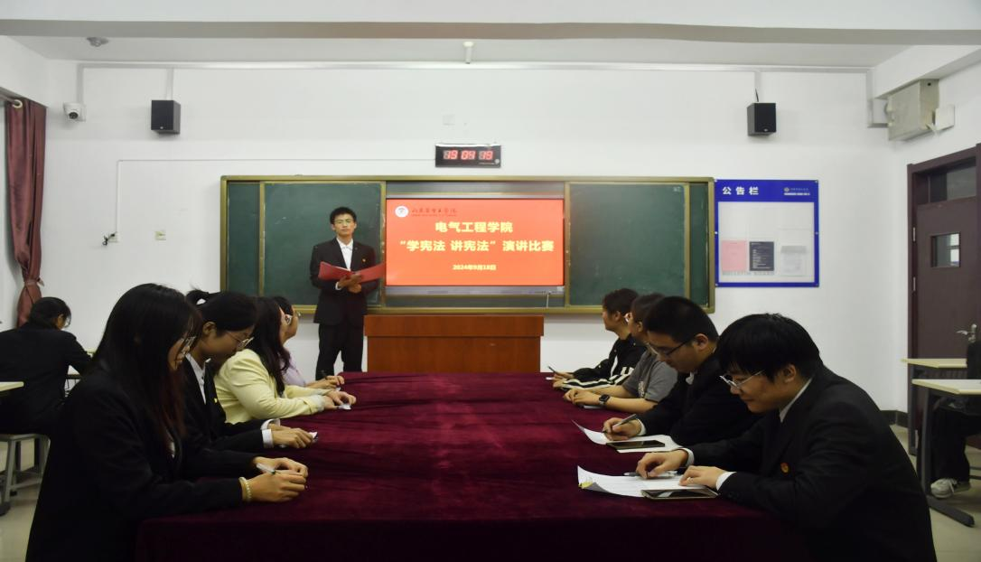为开展青年学生宪法宣传教育,引导青年学生树立宪法法治意识,yl6809永利官网集团高度重视,精心策划,认真组织,于2024年9月18日在10号楼414教室组织开展“学宪法讲宪法”主题演讲比赛活动。