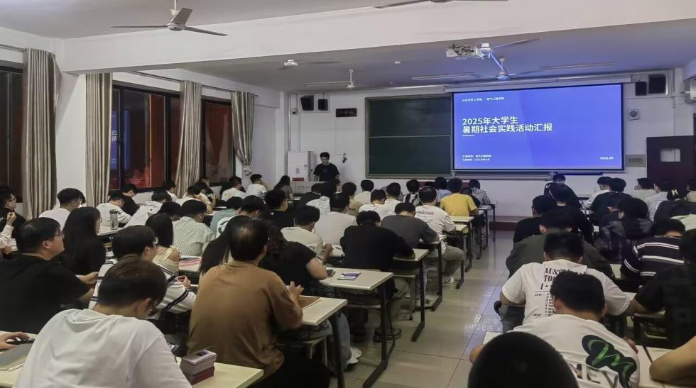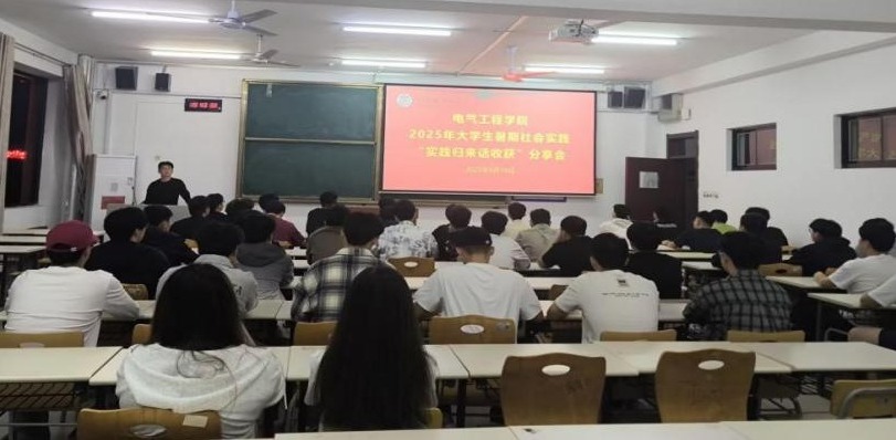 会前,主持人介绍了活动背景意义,强调了实践价值,鼓励同学汲取成长力量。会上,6位优秀实践代表围绕“三下乡”、企业实习、志愿服务、科研实践等主题,结合经历分享见闻感悟:有的讲述乡村支教克服困难助留守儿童拓视野,有的分享企业实习中用电路知识解决技术难题,有的提及社区志愿服务普及用电安全知识。实践代表们还展示了部分社会实践照片和视频,进一步帮助同学们直观了解实践活动。互动环节,台下同学就实践项目选择、挫折应对等提问,现场氛围融洽。