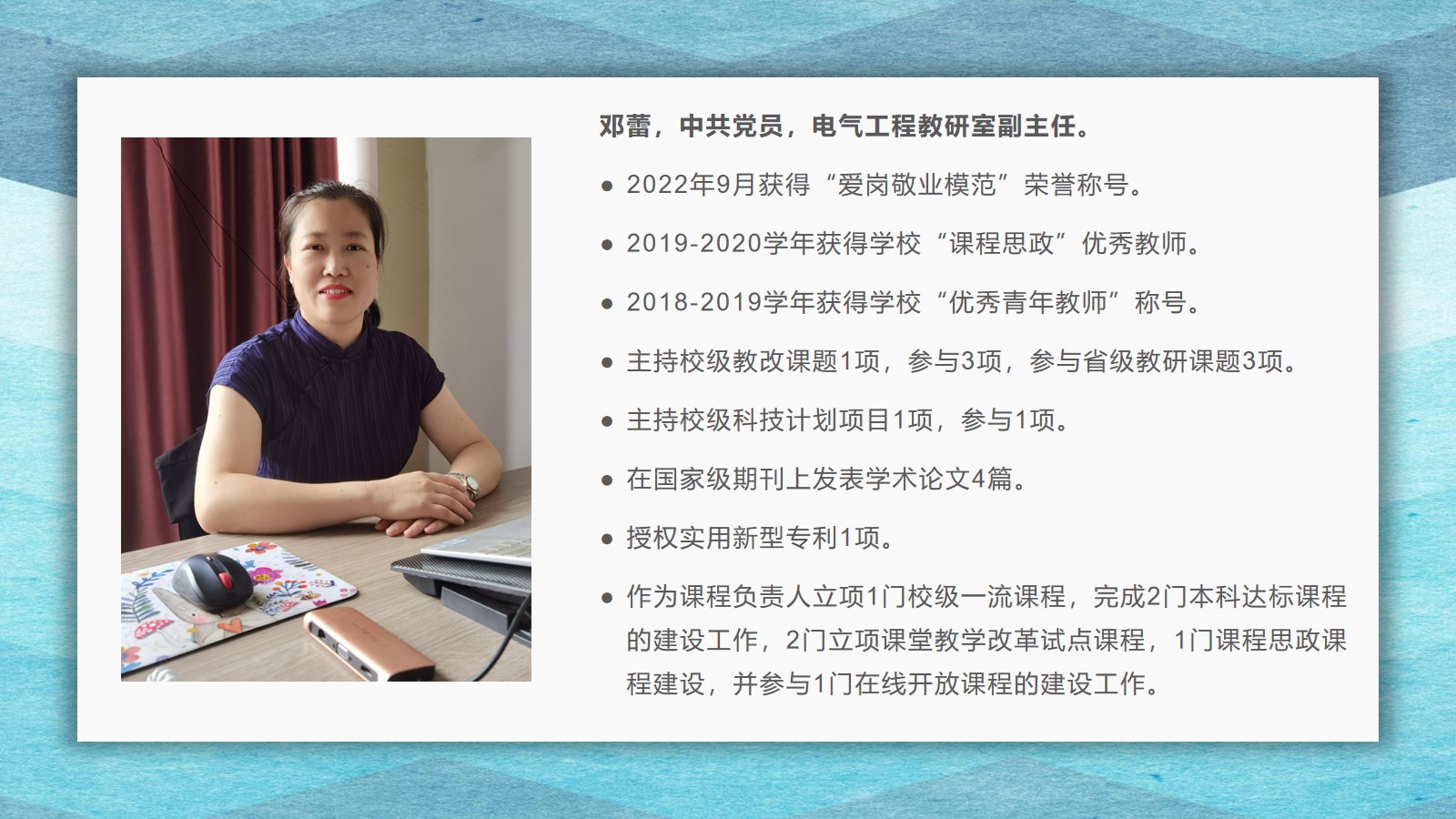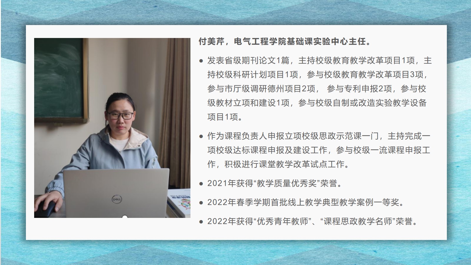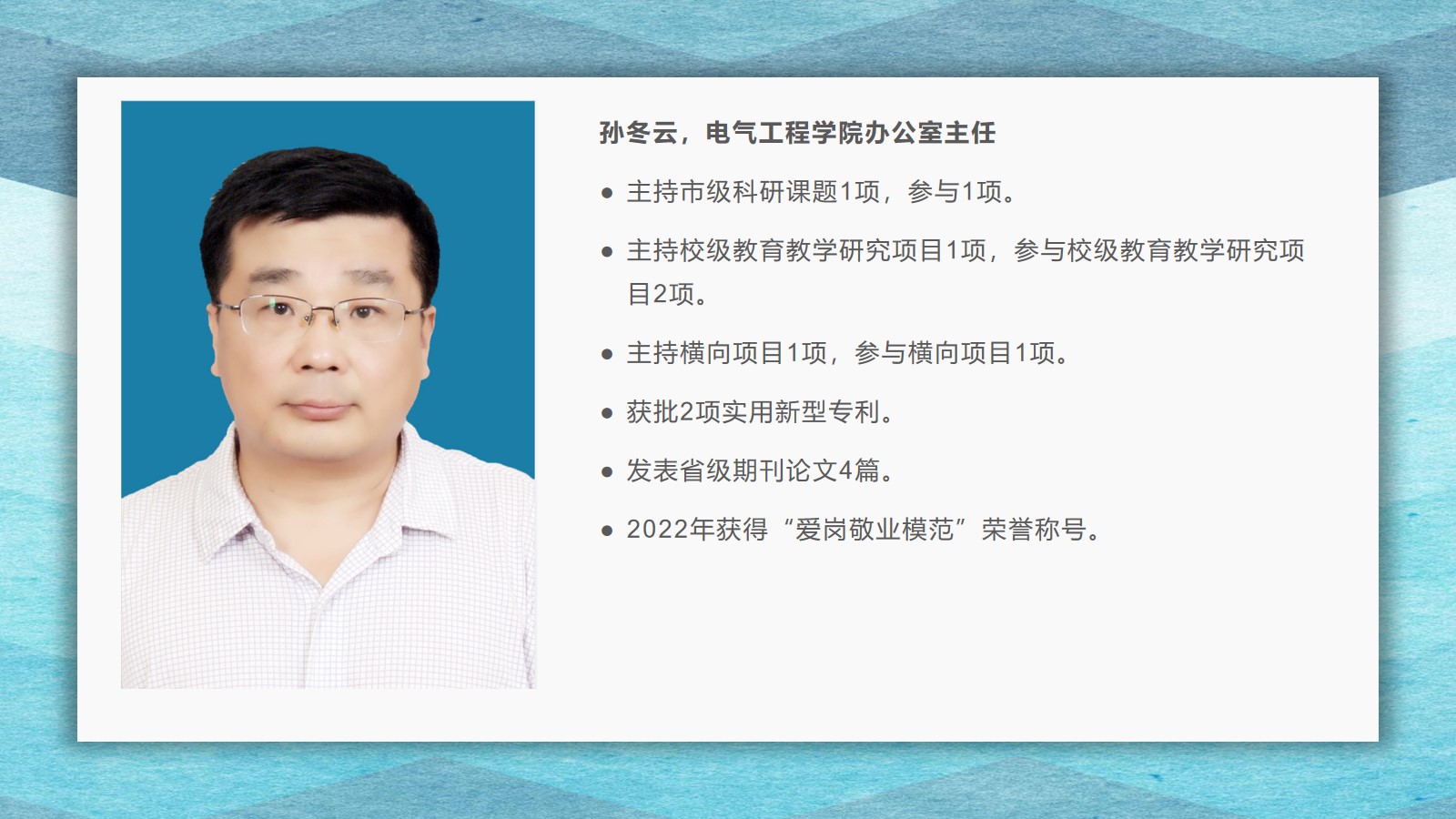 2021-2022学年,yl6809永利官网集团坚持全面落实“立德树人”,在教学、科研、学生管理等方面,取得了较好的成绩,学院荣获yl6809永利集团先进集体荣誉称号。为了弘扬尊师重教的良好风尚,学院通过校园网、微信公众号等宣传平台,宣传了2021 年度华宇最美教师(辅导员)、2021—2022 学年“课程思政”优秀教师、2021—2022 学年“四有”好老师、优秀青年教师、优秀思想政治教育工作者等先进个人的典型事迹,充分发挥榜样的引领作用,引导全院教师坚定理想信念、厚植爱国情怀、涵养高尚师德,激励教师踔厉奋发、笃行不怠,以更加坚定的信心和更加饱满的热情投入到教书育人的工作中。